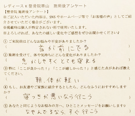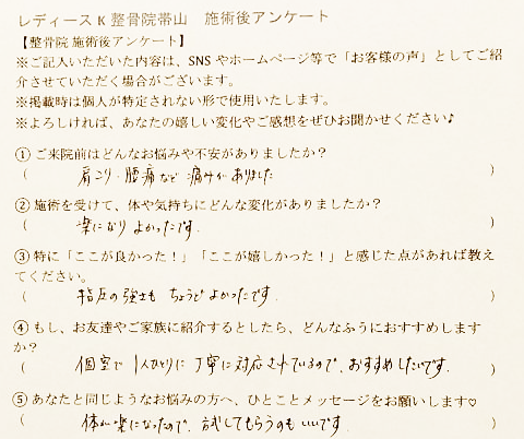施術を受けてすっきりして、毎日 日々を頑張りましょう!